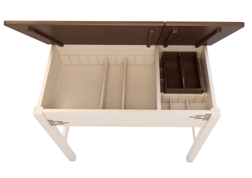 Felnyitható asztallap, rengeteg tárolóhely